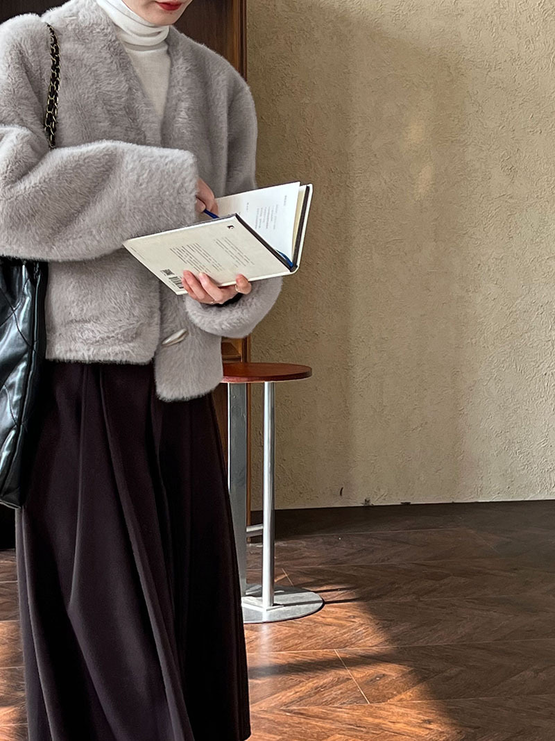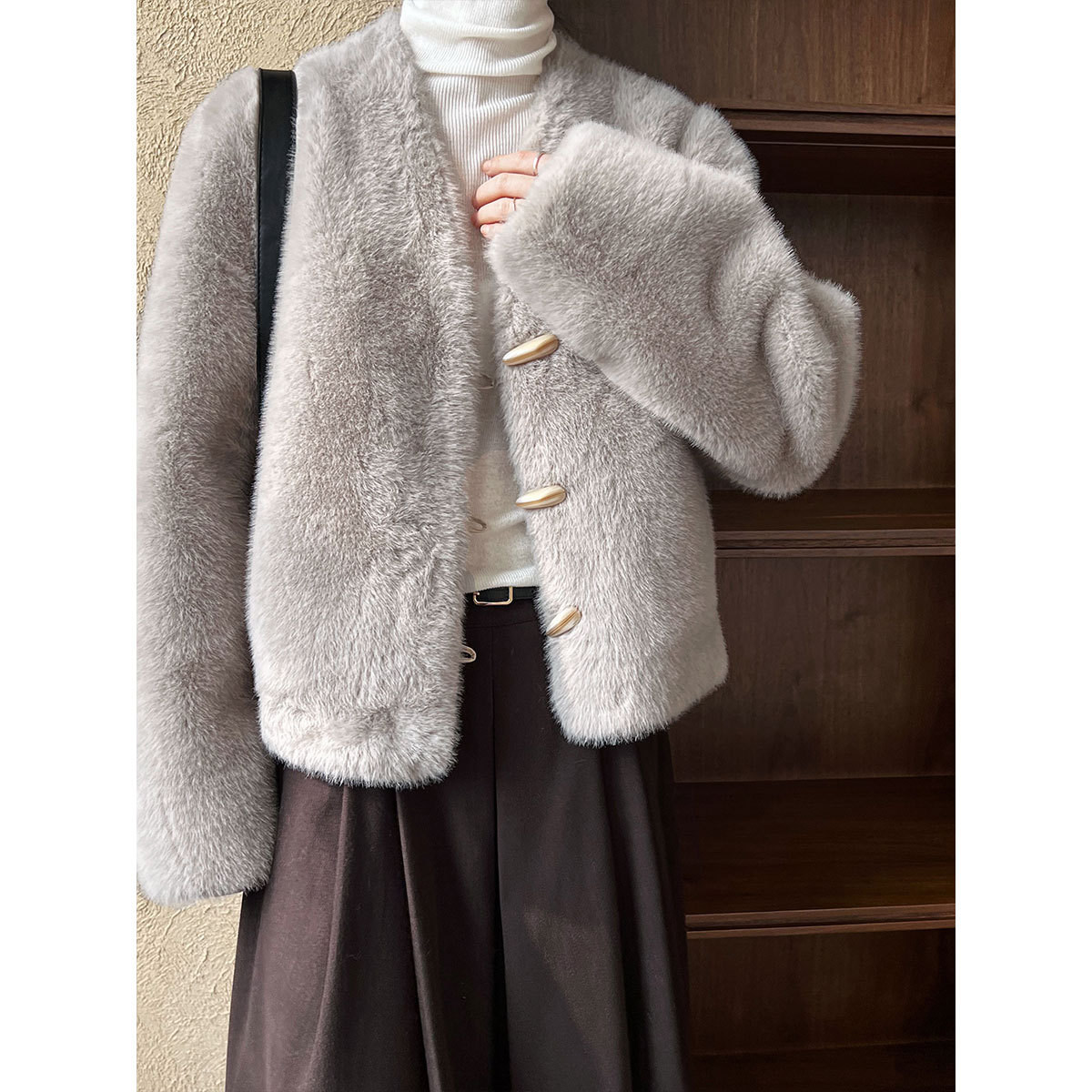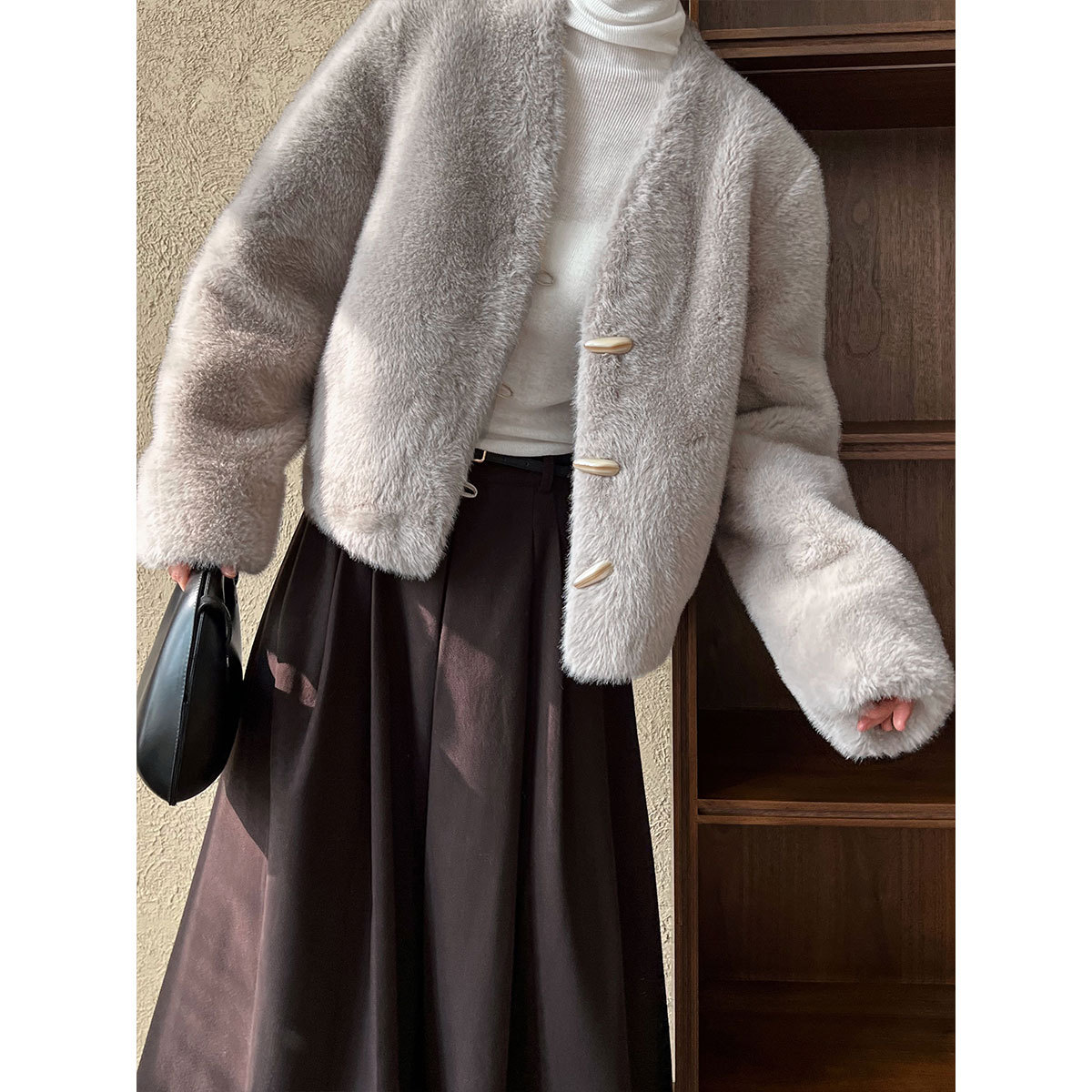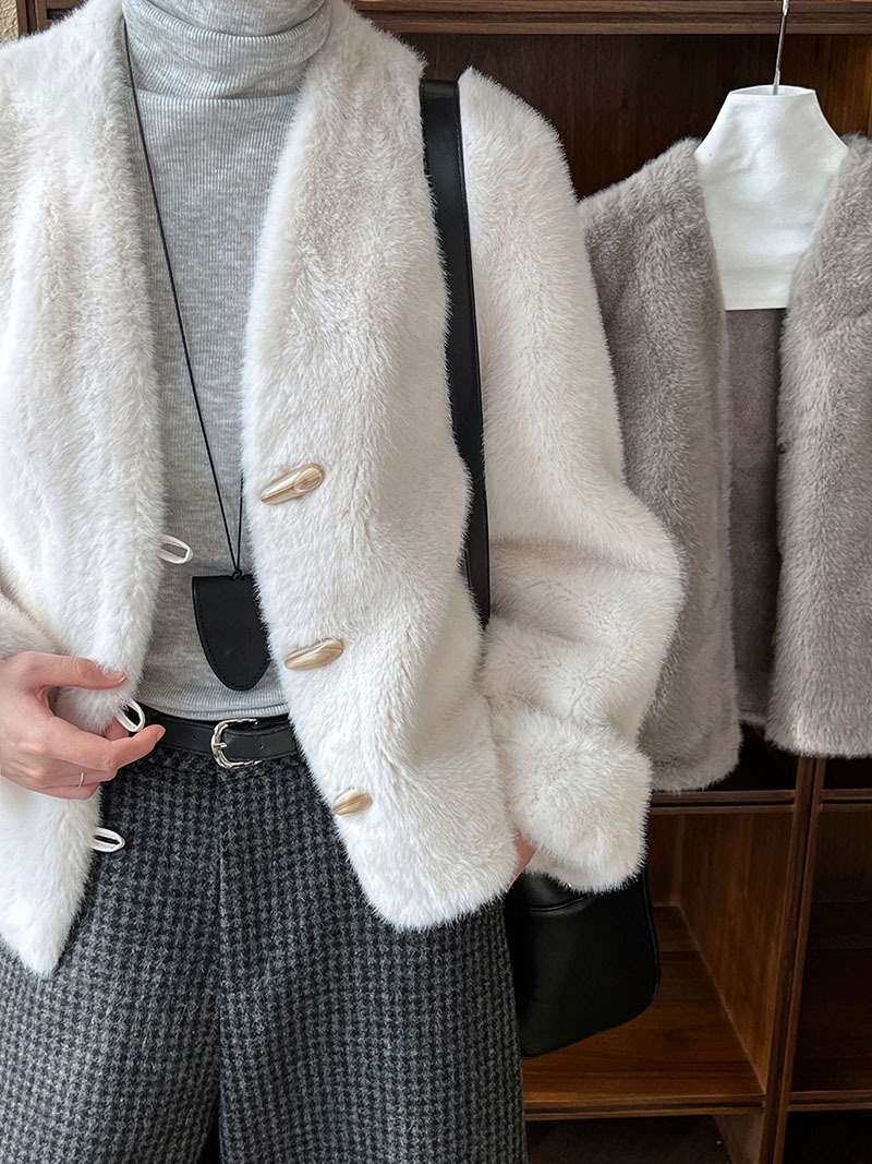 トグルボタンがアクセントになり、シンプルファッションに温かみをプラス。