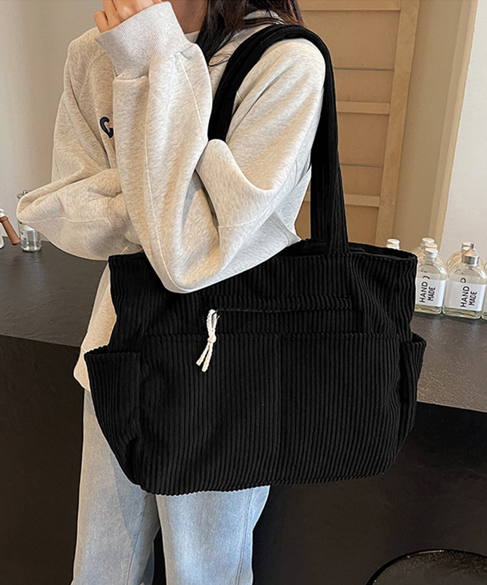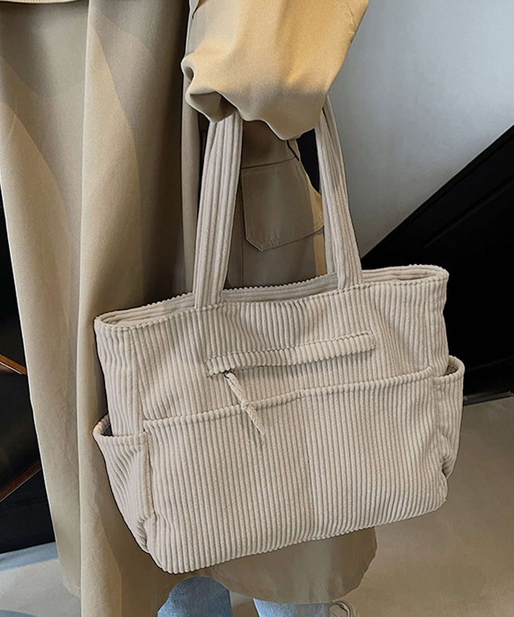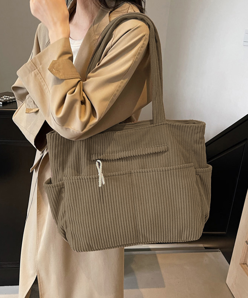 シンプルファッションにぴったりな、柔らかなコーデュロイ素材の大容量トートバッグ。
