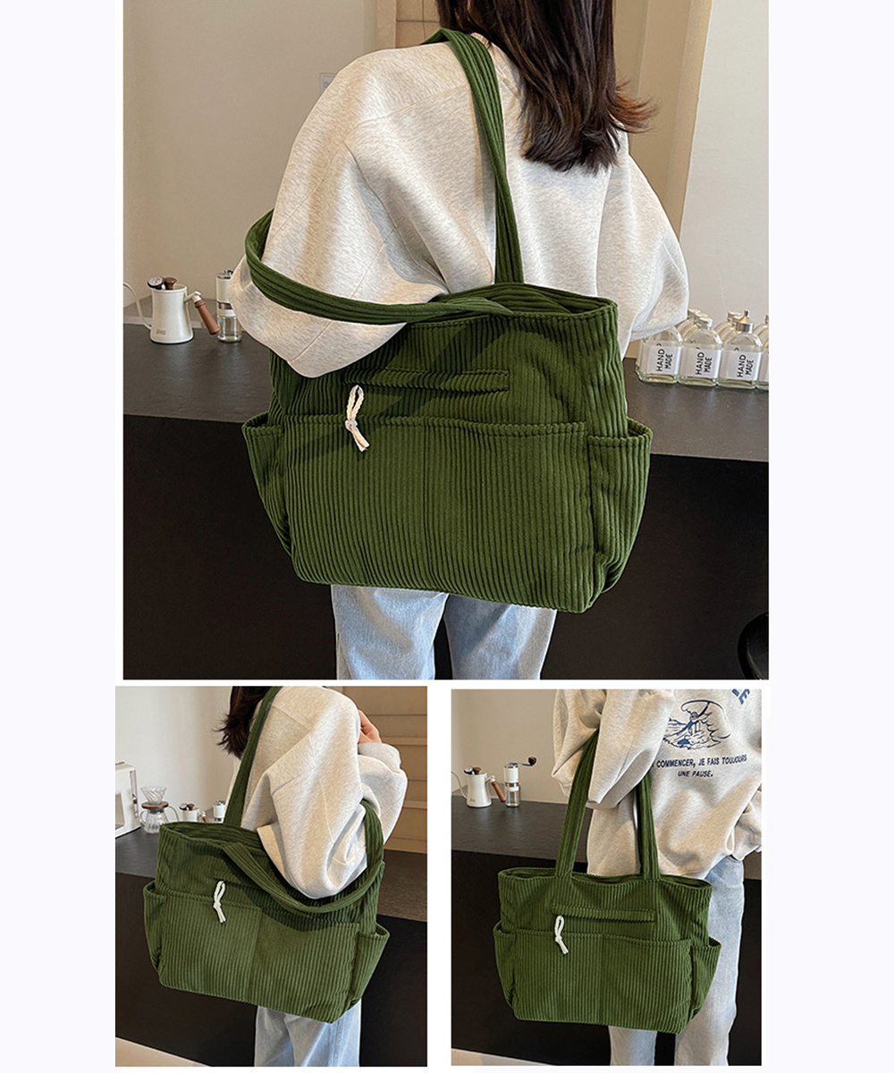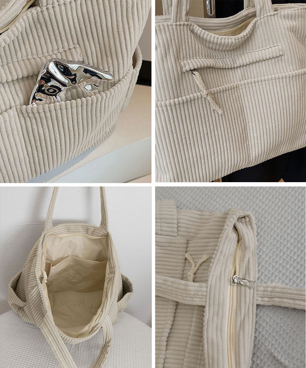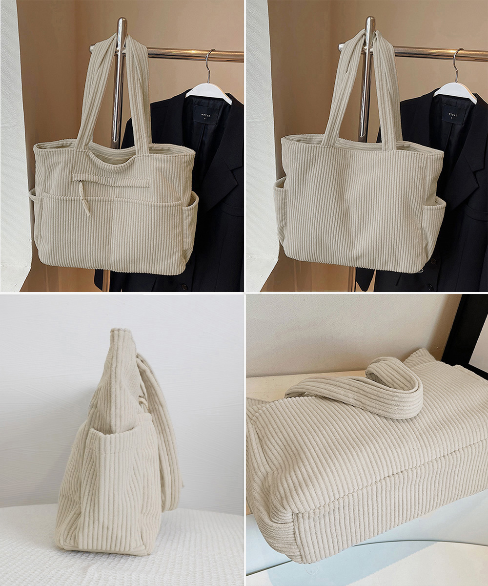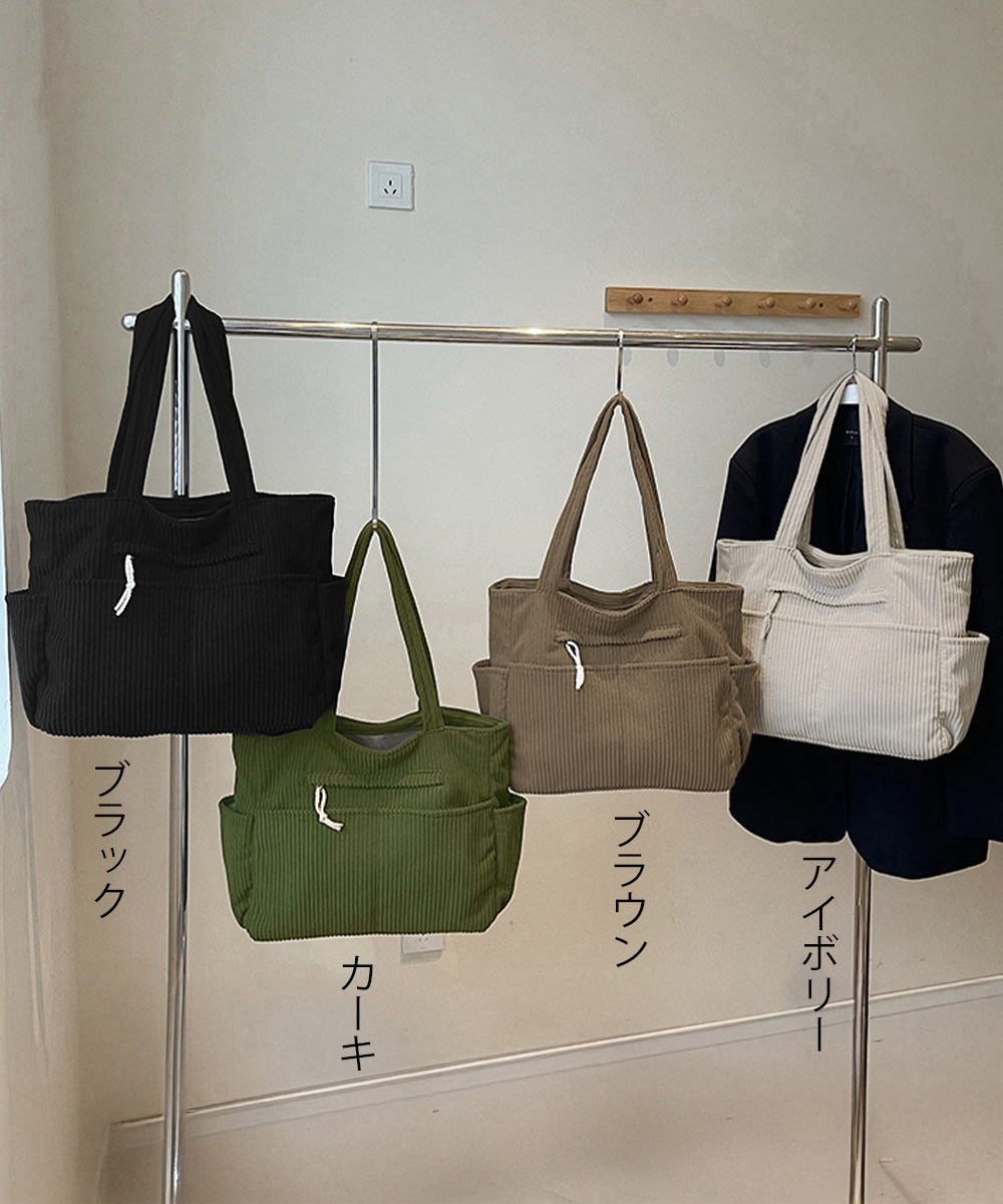 シンプルファッションにぴったりな、柔らかなコーデュロイ素材の大容量トートバッグ。
