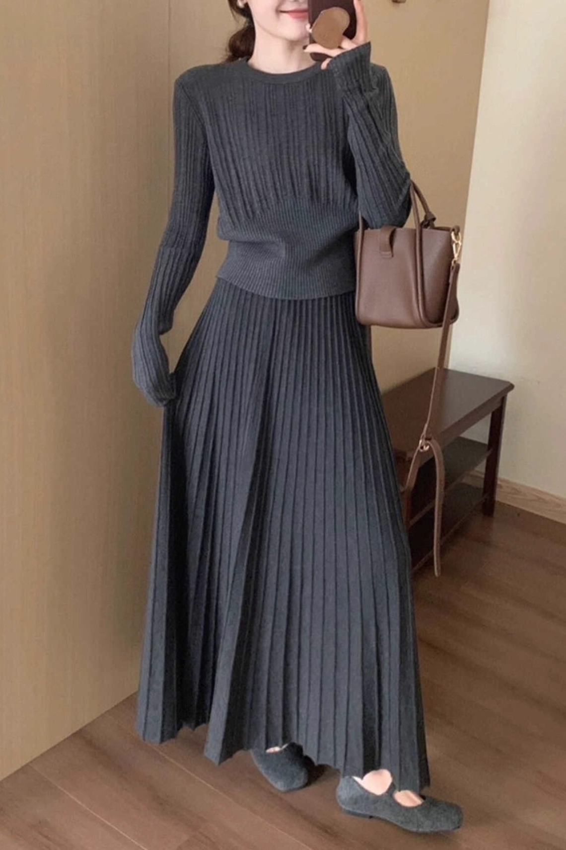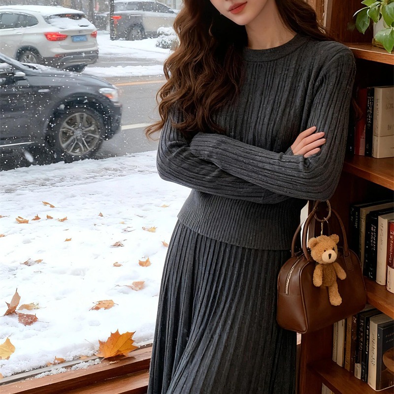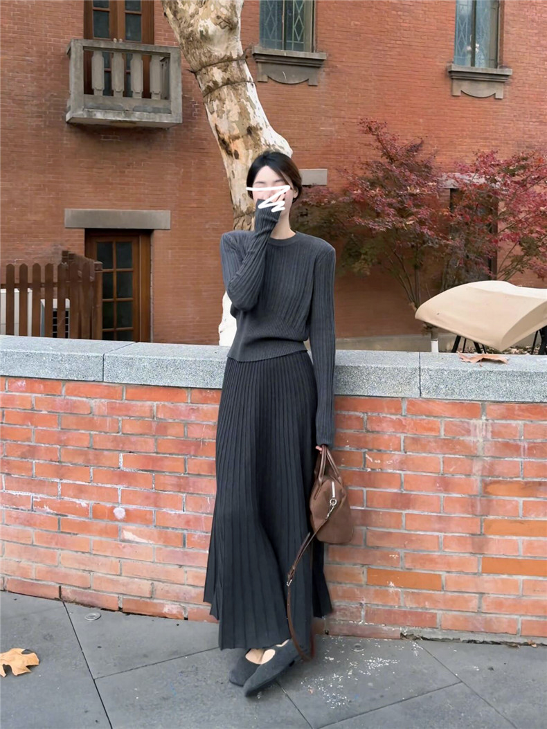 シンプルファッションの代表格、上品なリブニットの質感が魅力的なセットアップ。