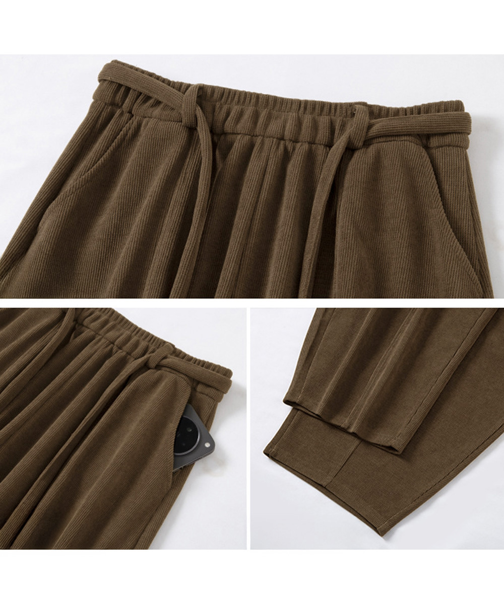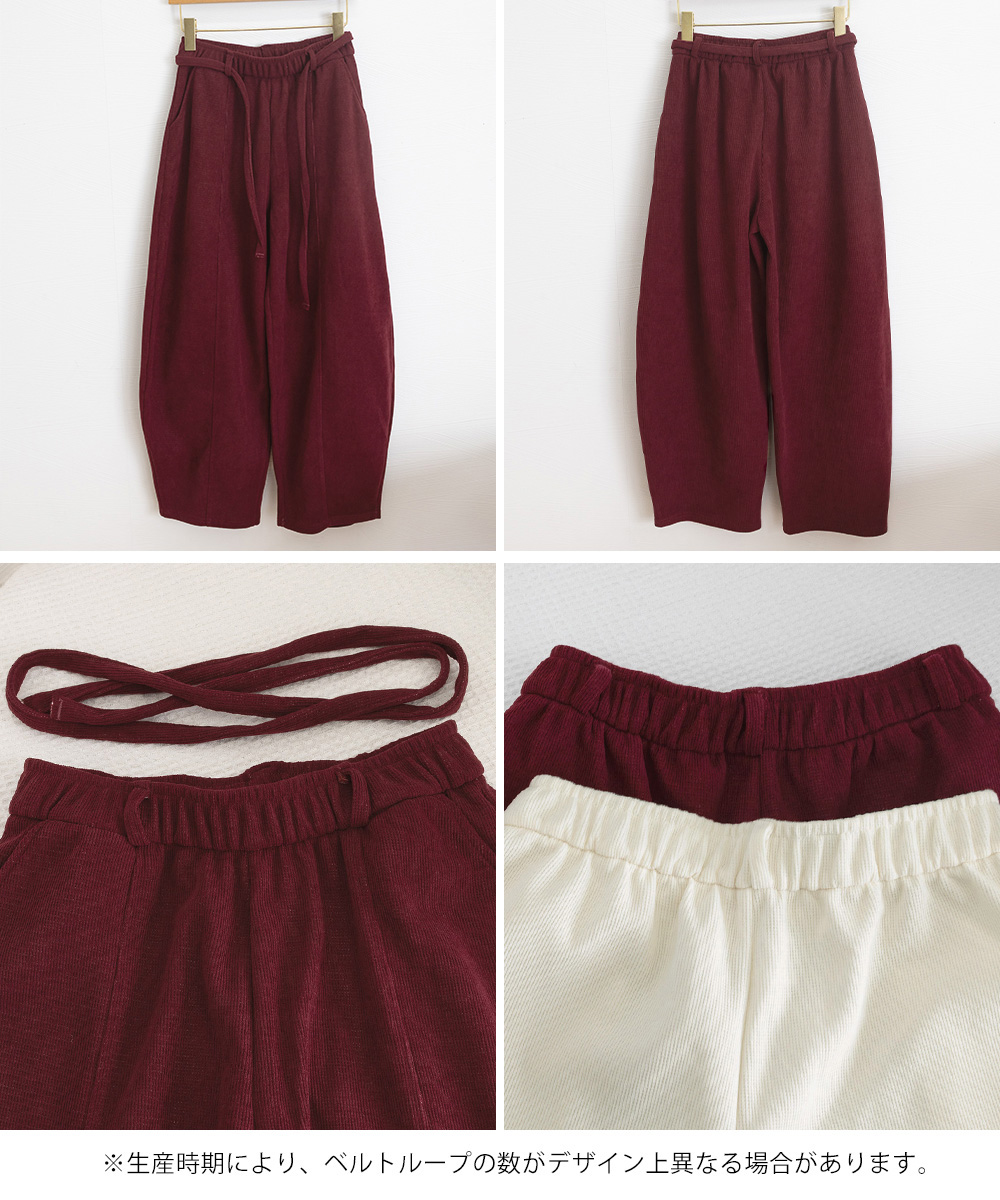 ハイウエストポケット付きバナナパンツ ドロストアーチパンツ ゆるイージーパンツ美脚厚手ニットパンツ着やせ秋冬ウエストゴム 体型カバー長ズボン 肉厚快適パンツ暖か 脚長パンツゆったり ハイウエストで脚がすらっと見えるワイドカーブパンツ。 脚のラインを拾いすぎず、さりげなく体型カバーできるデザイン。 フロントの控えめなカーブラインがポイントになり、他とは違うニュアンスを演出。 肉厚で柔らかなニット素材が秋冬のデイリーにぴったり。 ルーズ×綺麗見えの絶妙バランスで、カジュアルにもきれいめにも合わせやすい。 小柄さんでもバランス良く穿ける丈感で、着回し力のある一本。 素材:ポリエステル100% カラー:ブラック/オフホワイト/チャコールグレー/ブラウン/ダークカーキ/ワインレッド サイズ:ワンサイズ 着丈:約98cm 股下:約68cm ウエスト(ゴム仕様):約64-84cm ヒップ:約112-128cm もも周り:約70-86cm 裏地:なし 伸縮性:ややあり 透け感:なし