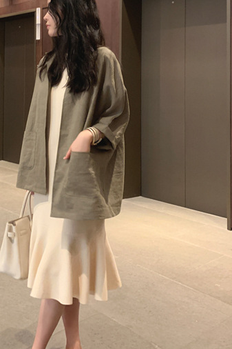 体型カバー効果もあり、紫外線対策としても活躍する万能な羽織りものです。
