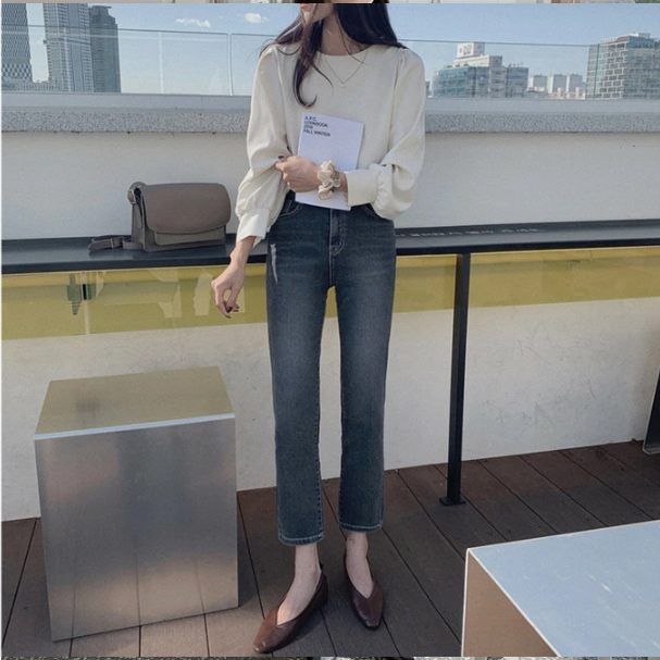 無地のきれいめカットソーは着回し力抜群で、デニムにもスカートにも合わせやすい一枚。