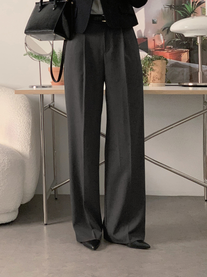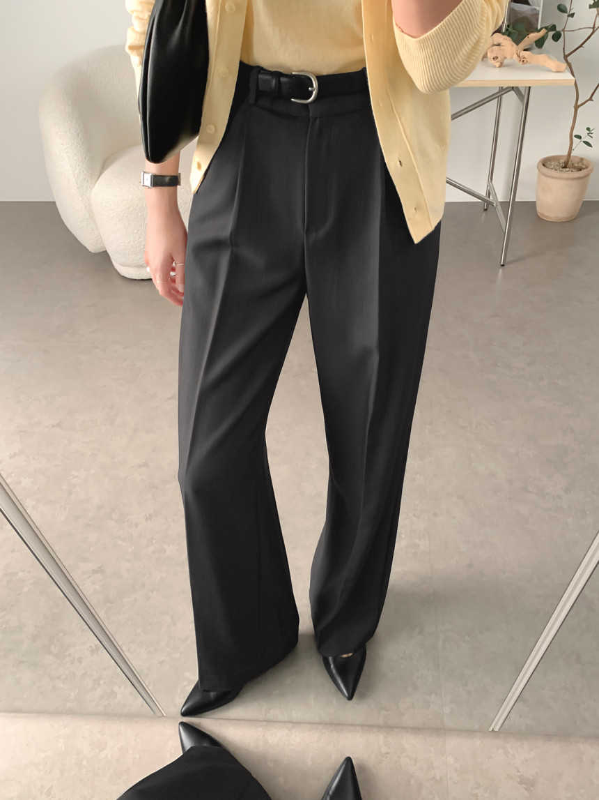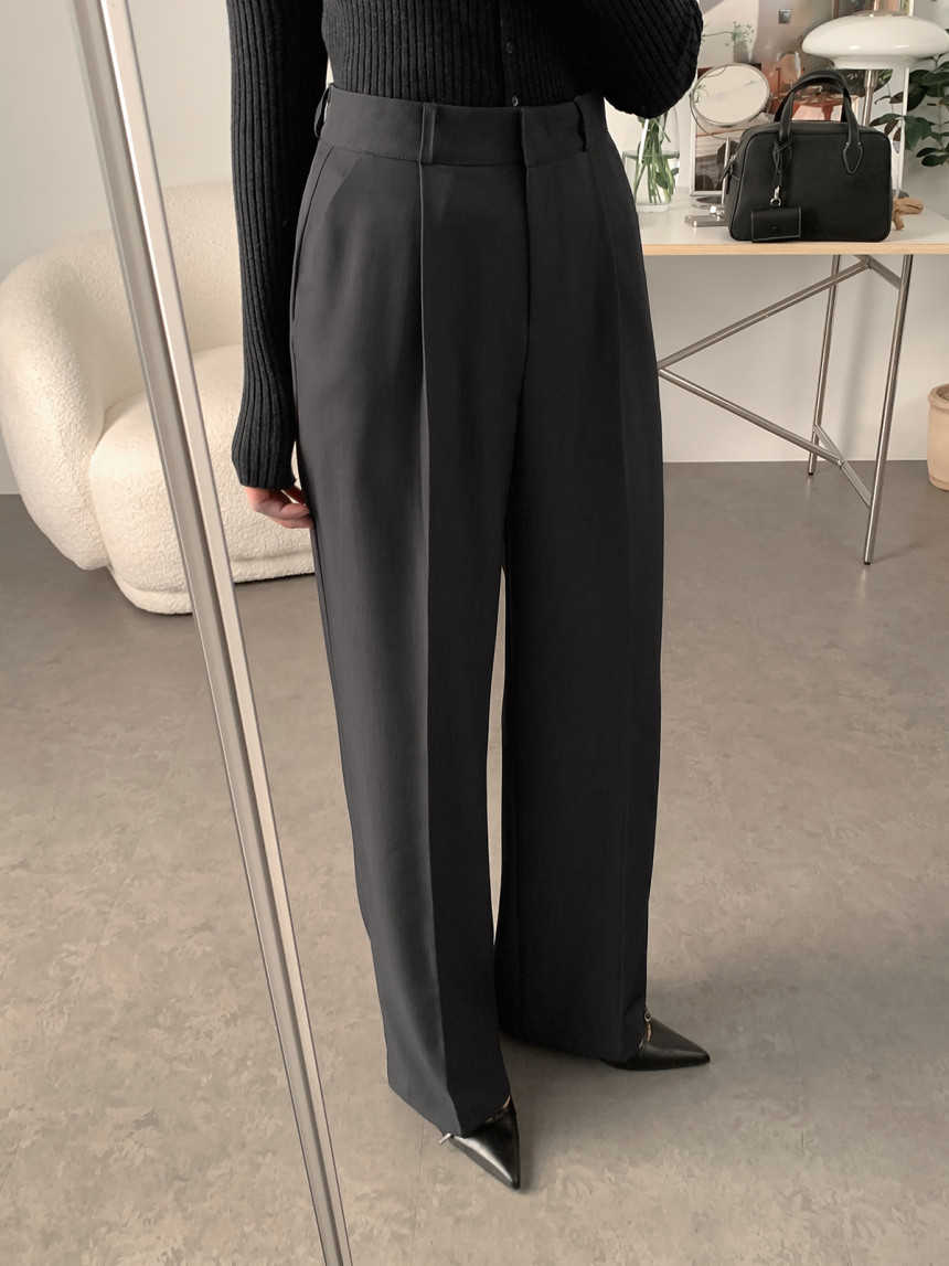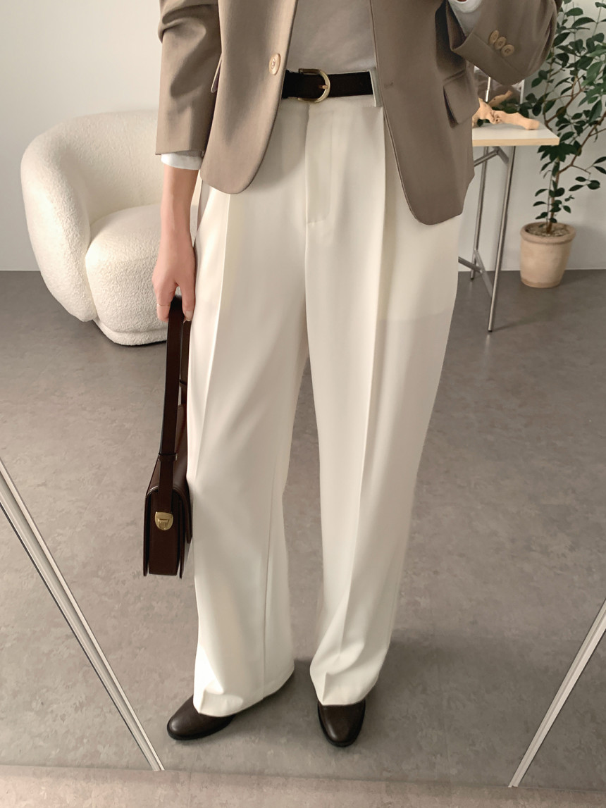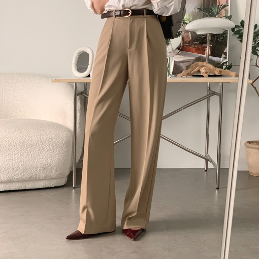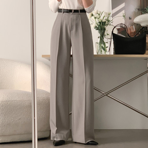 シンプルファッションの代表格、洗練されたハイウエストストレートパンツ。