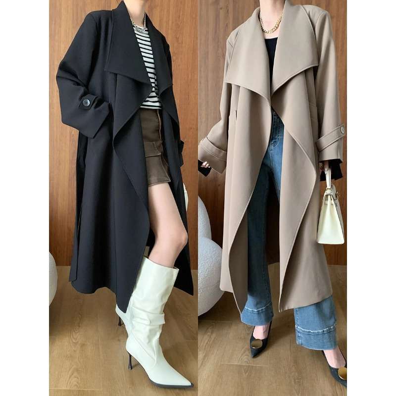 大きな襟と美しいドレープが際立つ上質コート。ゆったりとしたシルエットが魅力で、カジュアルにもフォーマルにもマッチ。ベルト不要のデザインは、さっと羽織るだけで洗練された印象を与える。長めの着丈が体型をカバーし、シンプルファッションを楽しむ上で欠かせない一着。シーズンを通じて活躍する、スタイルを格上げするコートです。