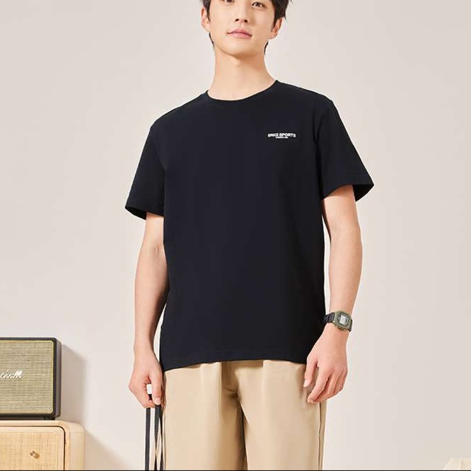 胸元のさりげないロゴがアクセントとなり、洗練された印象を与えます。